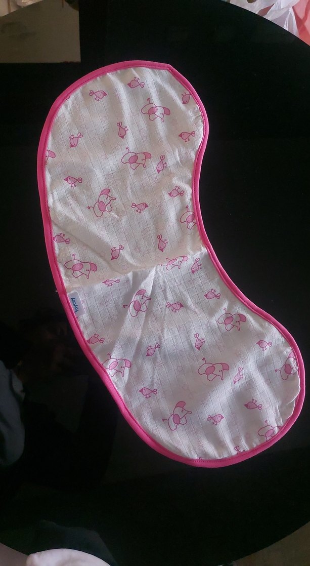 Pastel pembe renkte, nakışlı desenlere sahip yumuşak kumaşlı bebek önlüğü. Rahat kullanım için özel şekillendirilmiştir.