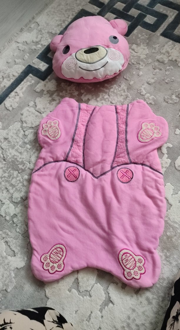 Nakışlı detaylara sahip yumuşak pembe bebek uyku tulumu, sıcak ve rahat bir kumaştan üretilmiştir. Uyku sırasında konfor ve sıcaklık sağlar.