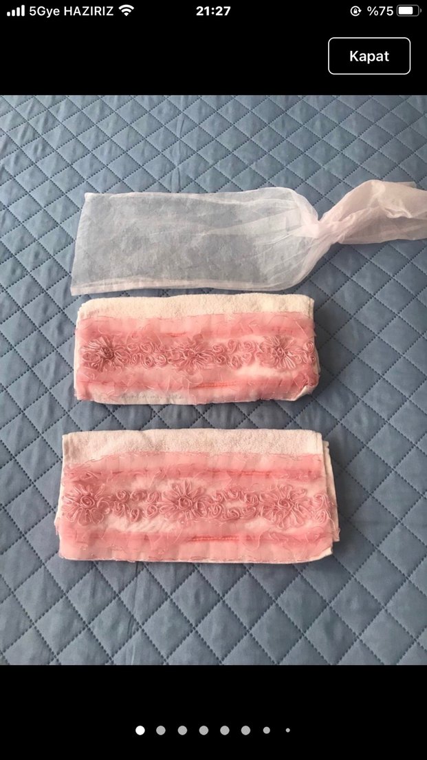 İki adet pastel pembe renkte, nakışlı bohem desenli yumuşak ve dekoratif havlu seti. küçük boy ceyizlik