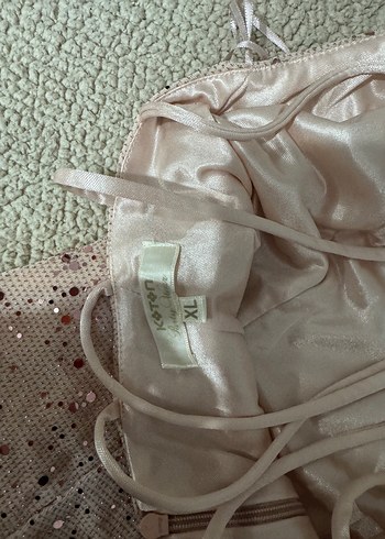Pastel pembe renkte, nakışlı ve kısa mini uzunlukta bohem tarzda sütyen. Yumuşak kumaşı vintage havası katıyor.