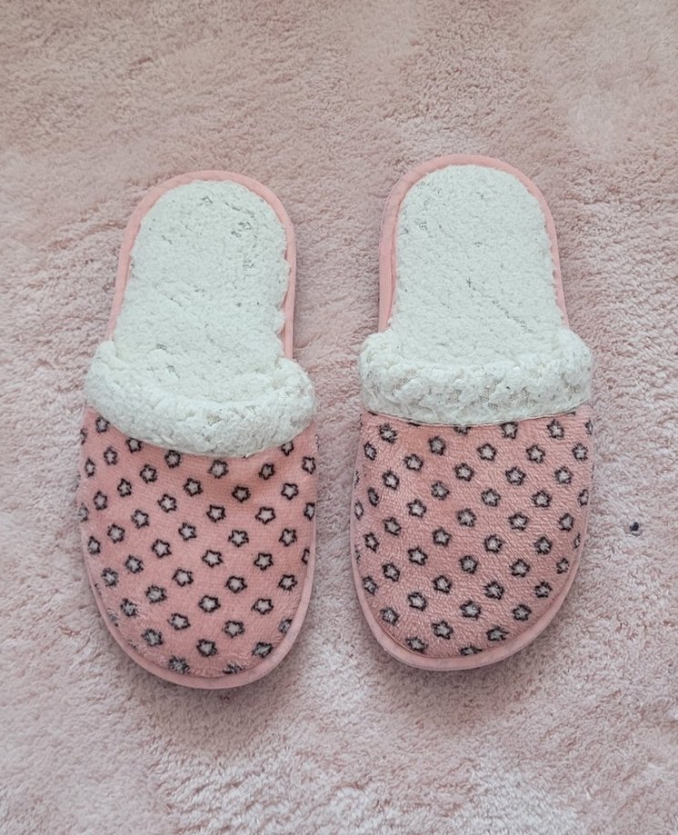 Nakışlı çiçek desenli pembe terlik, yumuşak ve sıcak iç astarla evde rahat kullanım için uygundur. çocuklar için uygundur 33