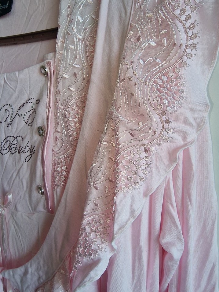 Nakışlı Pembe Hamile ve Emzirme Gecelik