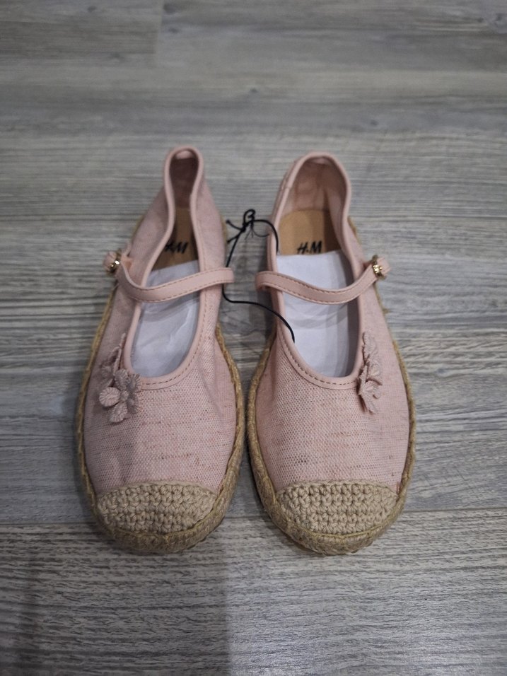 H&M Pembe renkli, tokalı bantlı ve nakışlı detaylara sahip kız çocukları için kauçuk çok hafif baharlık yaz babet ayakkabılar.