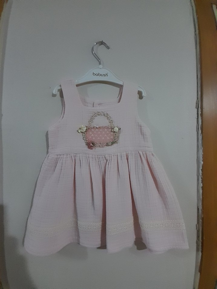 Nakışlı Pembe Kız Çocuk Elbise