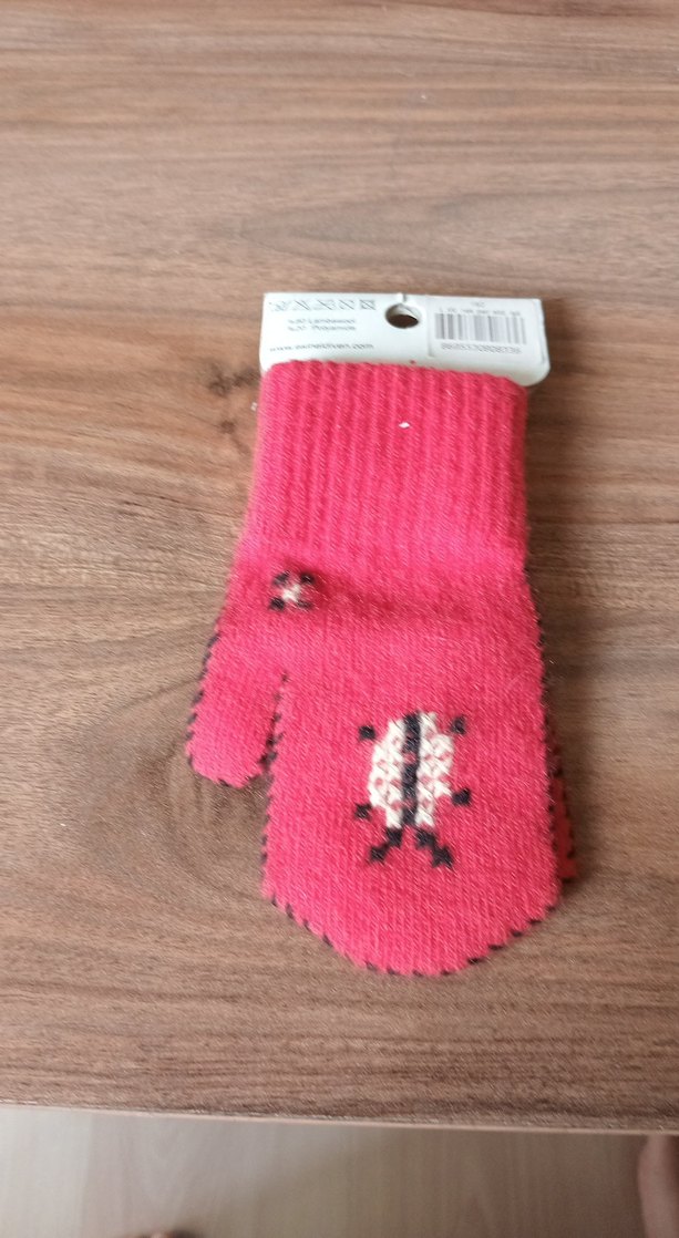 Renkli nakış detaylı, yumuşak örme kumaştan yapılmış pembe kız çocuk eldivenleri.