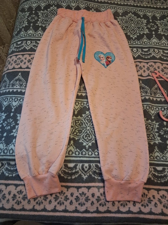 Yumuşak ve sıcak kumaş, nakışlı desen ve örme detaylı, bol kesim pembe eşofman altı. Rahat sokak stili için uygundur.