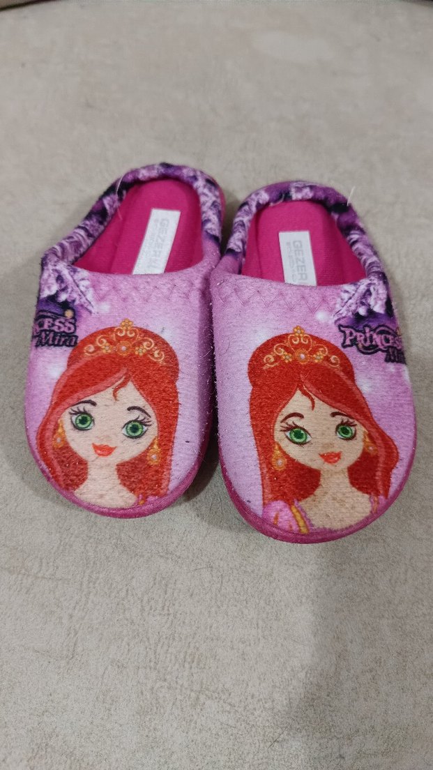 Renkli nakışlı prenses desenli, örgü detaylı ve yumuşak kürk dokulu pembe kız çocuk ev terliği. Rahat ve eğlenceli bir seçim.