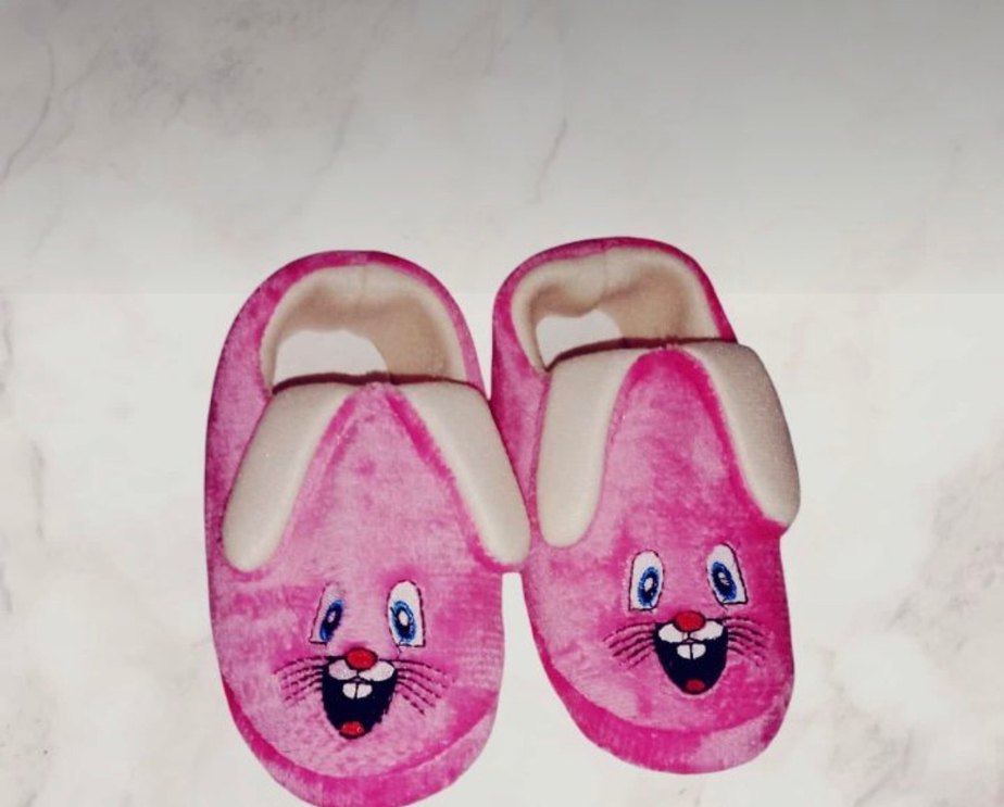 Nakışlı gülen yüz desenli, içi yumuşak kürk detaylı pembe kız çocuk ev terliği. Rahat ve renkli tasarım.
