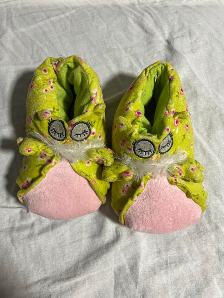 Nakışlı desenli ve yumuşak kürk dokulu pembe kız çocuk terlikleri, fırfır detayı ve eğlenceli pop kültür tarzıyla bohem görünüme uygun. 30/31 numara uyumlu