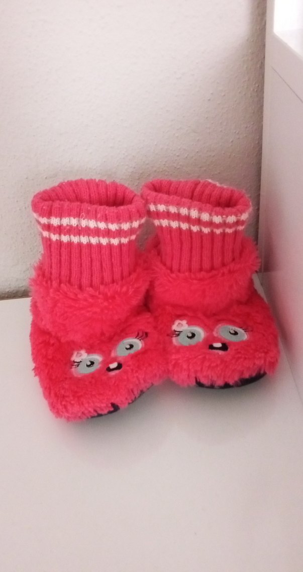 Renkli pembe kız çocuk terlikleri, örgü manşet ve nakışlı detaylarla yumuşak ve sıcak kumaştan üretilmiştir. İç mekan kullanımı için uygundur.