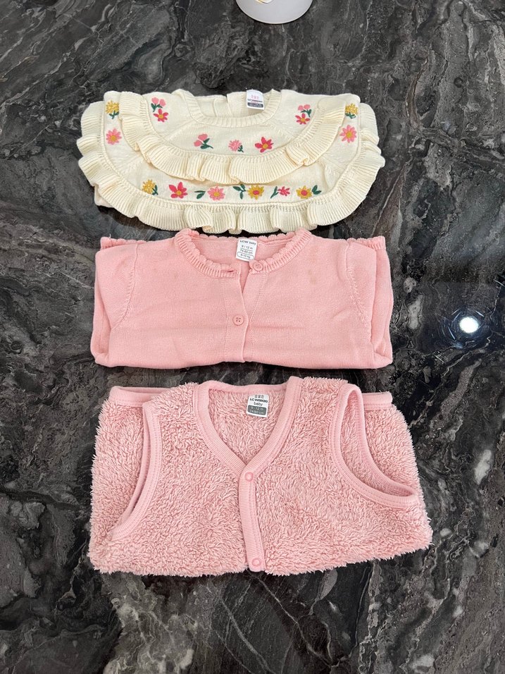 9/12 ay uyumlu Nakışlı çiçek detaylı, pembe, ince örme, kız çocuk için fit kesim kolsuz süveter. Yumuşak ve sıcak kumaştan, normcore tarzında.