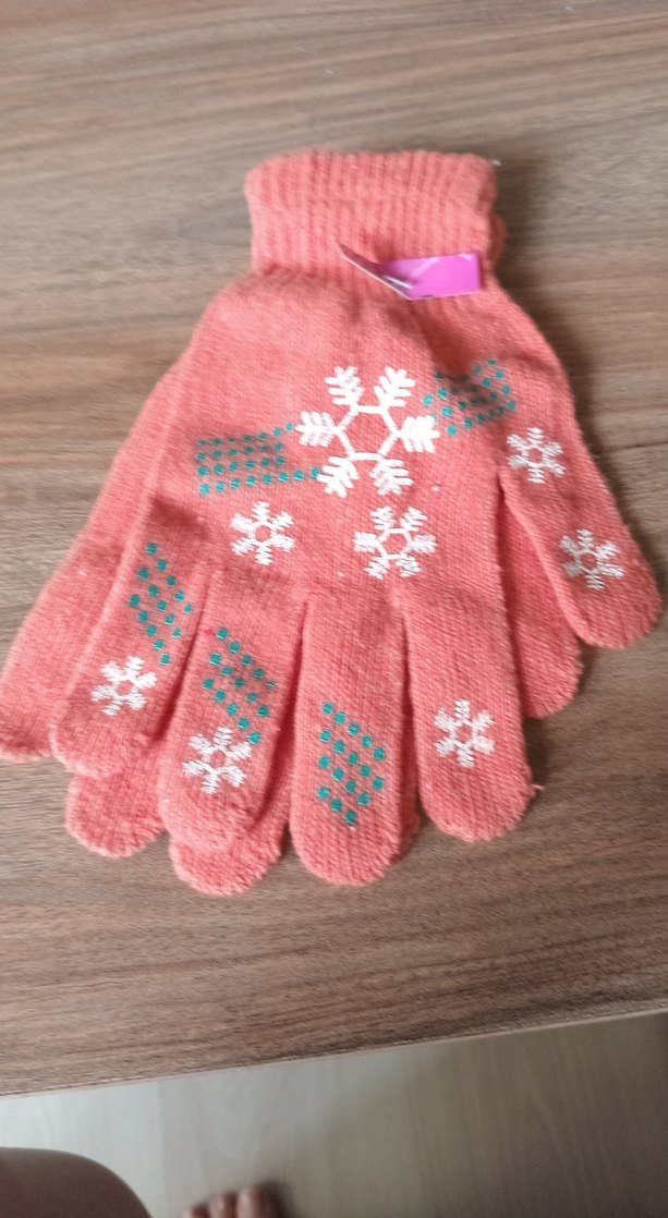 Yumuşak ve sıcak kumaştan örülmüş, nakışlı kar tanesi desenli pembe kız eldiveni, bohem tarz için uygun. ❄️