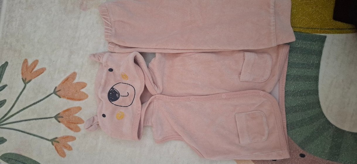 Pastel pembe renkli, nakışlı detaylara sahip yumuşak ve sıcak kumaştan üretilmiştir.