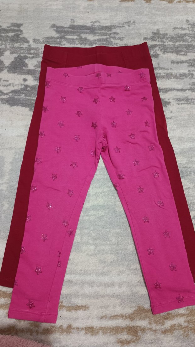 Yumuşak ve sıcak kumaştan, nakışlı yıldız desenli, esnek bel bantlı pembe kız taytı. İki adet, biri düz koyu pembe.