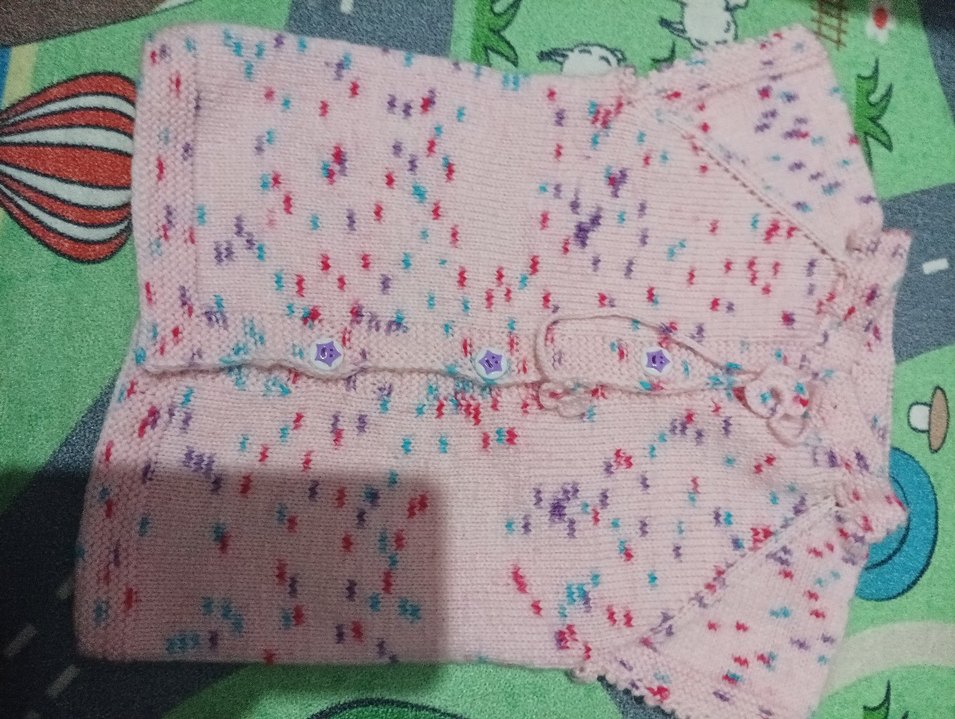Uzun kollu, pastel pembe renkte, nakışlı ve fitted kesime sahip kız hırkası. Bohem tarzını yansıtır.