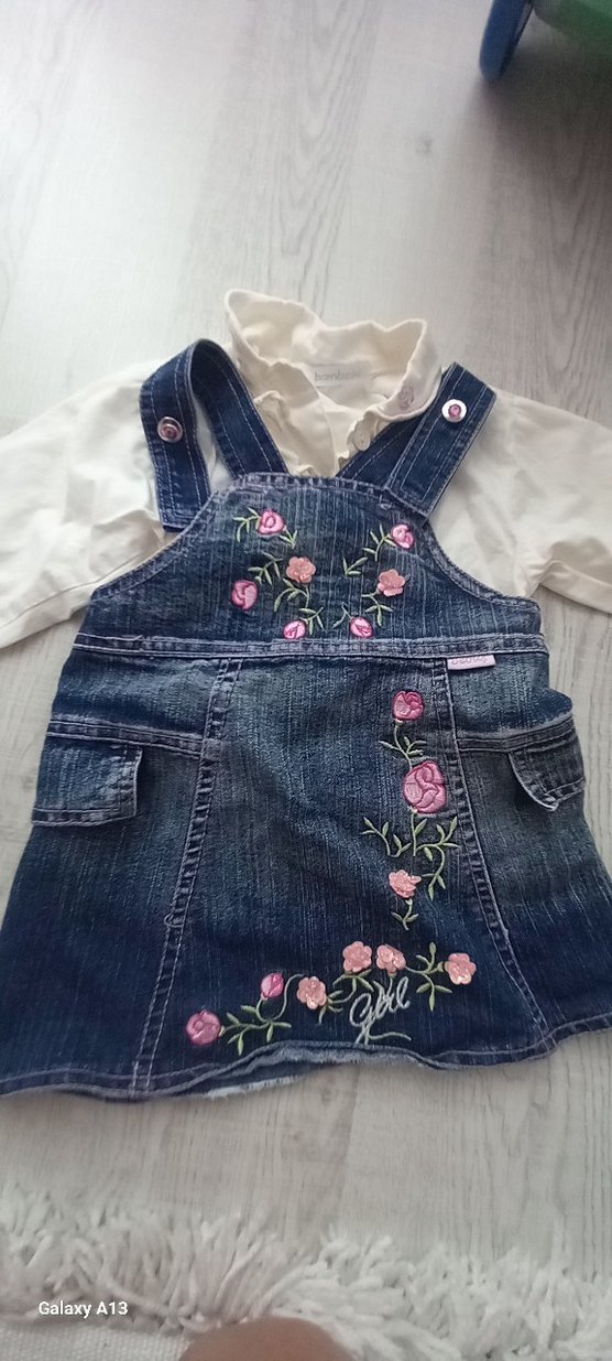 Nakışlı Pembe Kot Kız Elbise ve gömlek