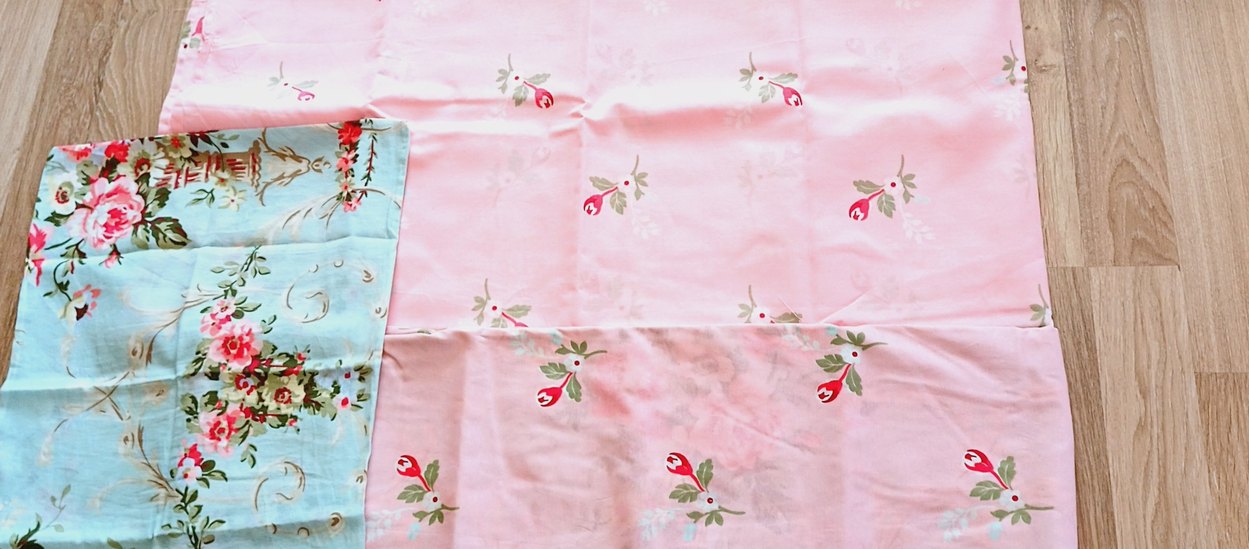 Pastel pembe renkte, yumuşak kumaş üzerine işlenmiş narin çiçek nakışları bulunan nevresim takımı.
