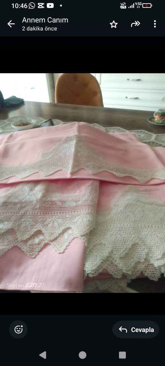 Pastel pembe renkte, zarif nakışlı desenlere sahip nevresim ve çarşaf takımıdır. Üzerinde "hoton CM2" etiketi bulunmaktadır. ️ sıfır