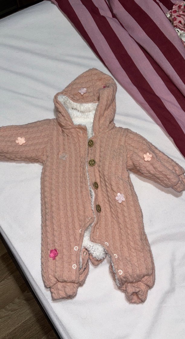 Nakışlı Pembe Örgü Bebek Tulumu