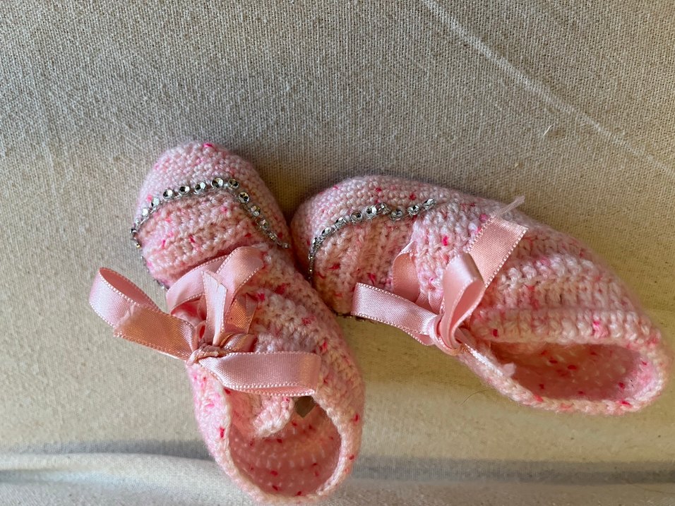 Nakışlı Pembe Örgü Kız Bebek Patik