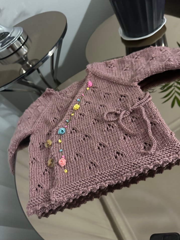 Nakışlı Pembe Örgü Kız Hırka