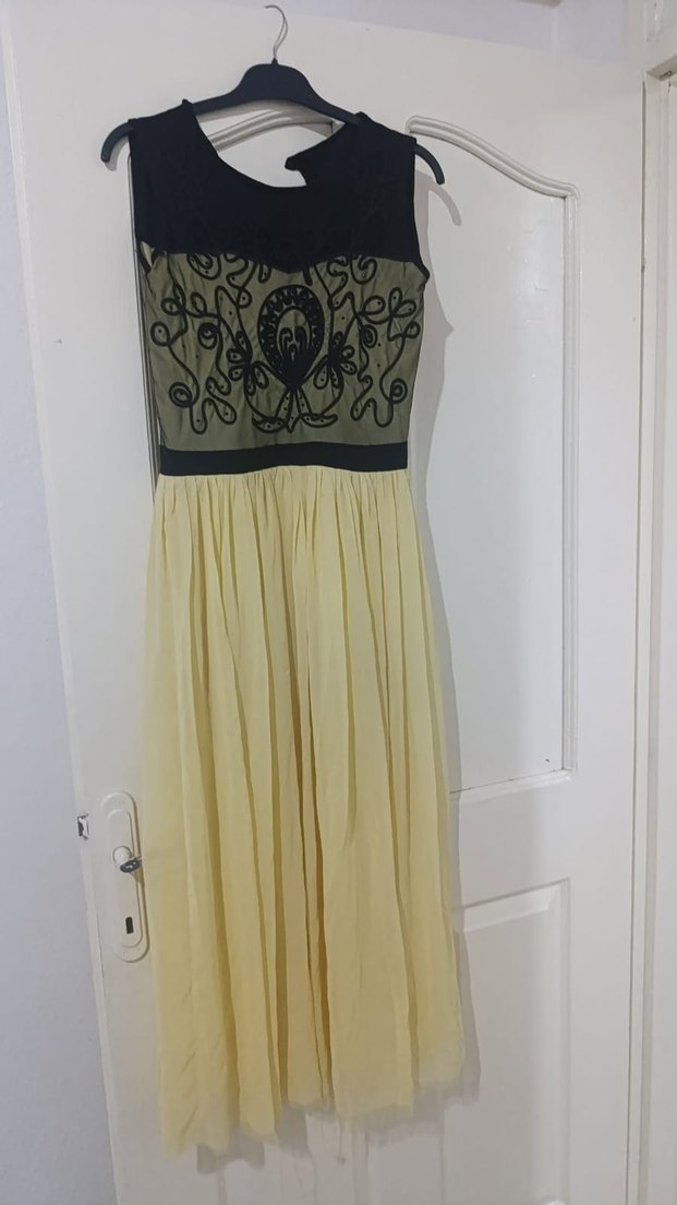 Nakışlı, Pileli, Uzun Sarı Abiye Elbise