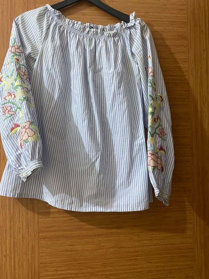 Bohem tarzda, tekne yaka ve uzun kollu kadın bluzu. Kollarında nakışlı çiçek desenleri ve pilili detaylar bulunur. Gevşek kesimi rahatlık sunar. Pastel çok renkli kumaşa sahiptir. Yurt dışından alındı salaş çok güzel bir model