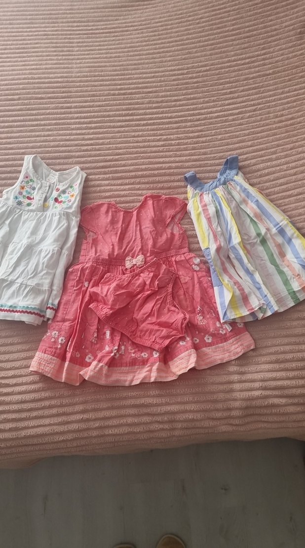 3 parca Nakışlı desenlere ve pliseli detaylara sahip, askısız, çok renkli pastel tonlarda, bol kesimli bohem tarzı kız elbisesi.