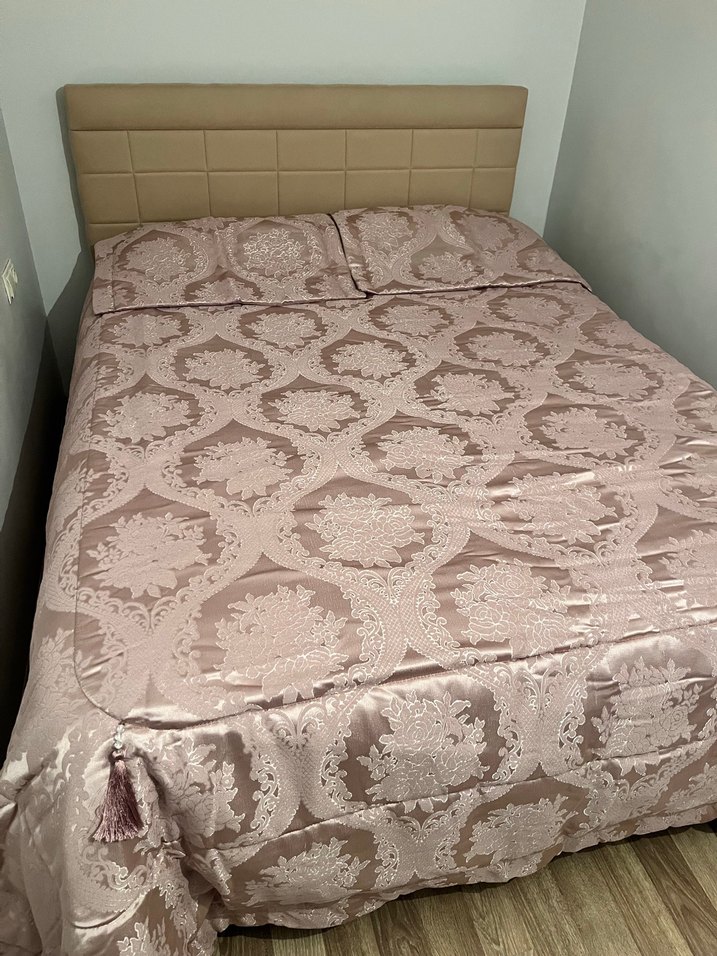 Pastel pembe renkli, nakış işlemeli ve köşelerinde püskül detaylı yatak örtüsü, yatak odanıza şık bir dokunuş katar. ️