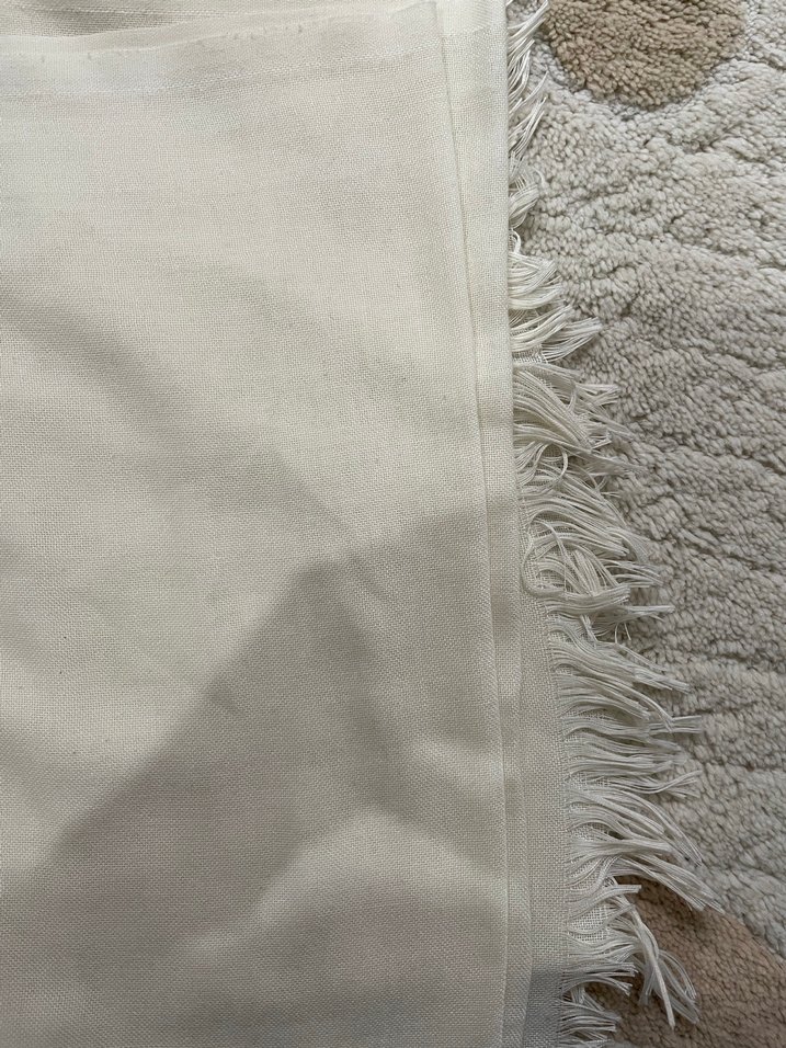 Nakışlı detaylar ve püsküllerle süslenmiş kırık beyaz keten şal, rahat bohem tarz için regular kesim ve uzun boyda.