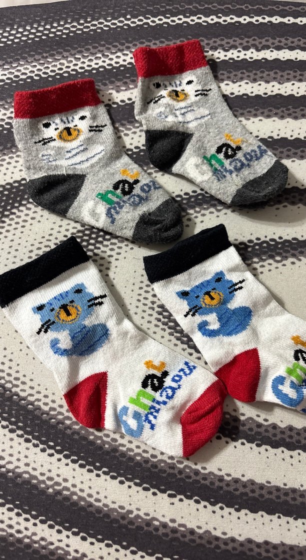 Nakışlı renkli kedi desenli erkek çorapları, kırmızı ve siyah topuklu ve burunlu, yumuşak ve konforlu.