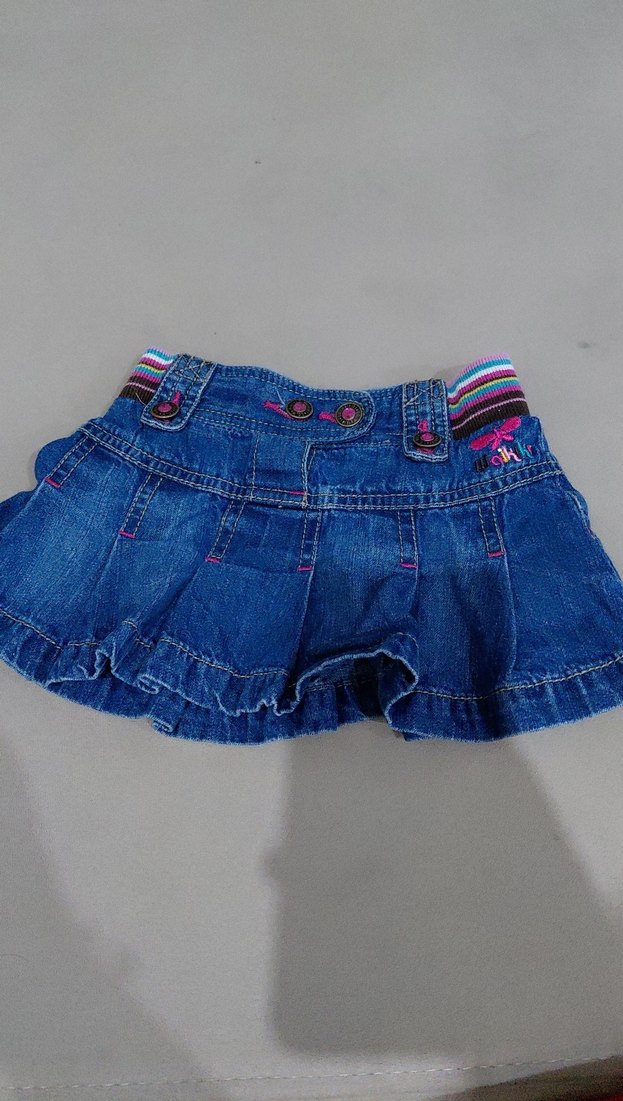 Nakışlı Renkli Fırfırlı Kız Kot Etek