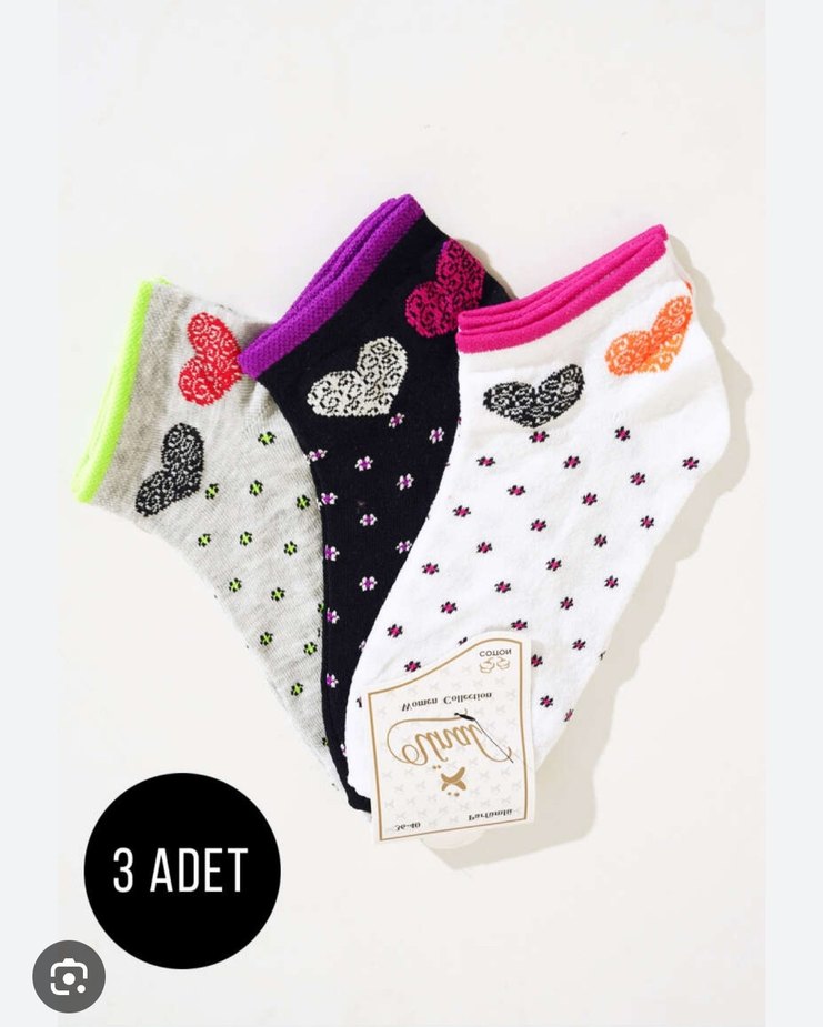 Pamuklu, nakışlı kalp desenli, küçük çiçek detaylı renkli kız çorabı seti, 3 adet. Yumuşak ve rahat kumaş içerir.