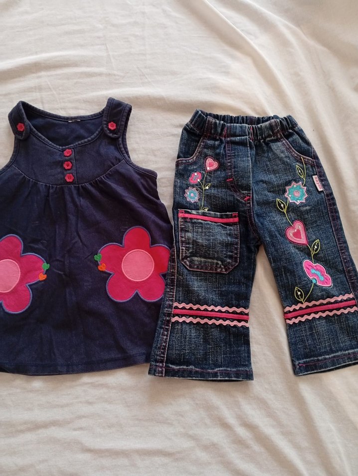 Nakışlı çiçek desenli, düğmeli, renkli, bol kesim kız denim tulumu, rahat kullanım sağlar Ürünler 1 kere giyilmiştir gayet iyi durumdadır 1 yaş uyumludur alan kişiye Hayırlı Olsun