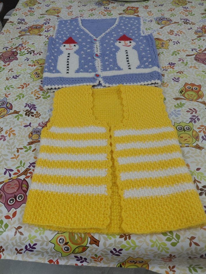 Renkli ve nakışlı desenlere sahip, örgü kız erkek çocuk yeleği. Kolsuz ve vücuda oturan kesimiyle rahat ve şık bir görünüm sunar. Tunus örgüsü