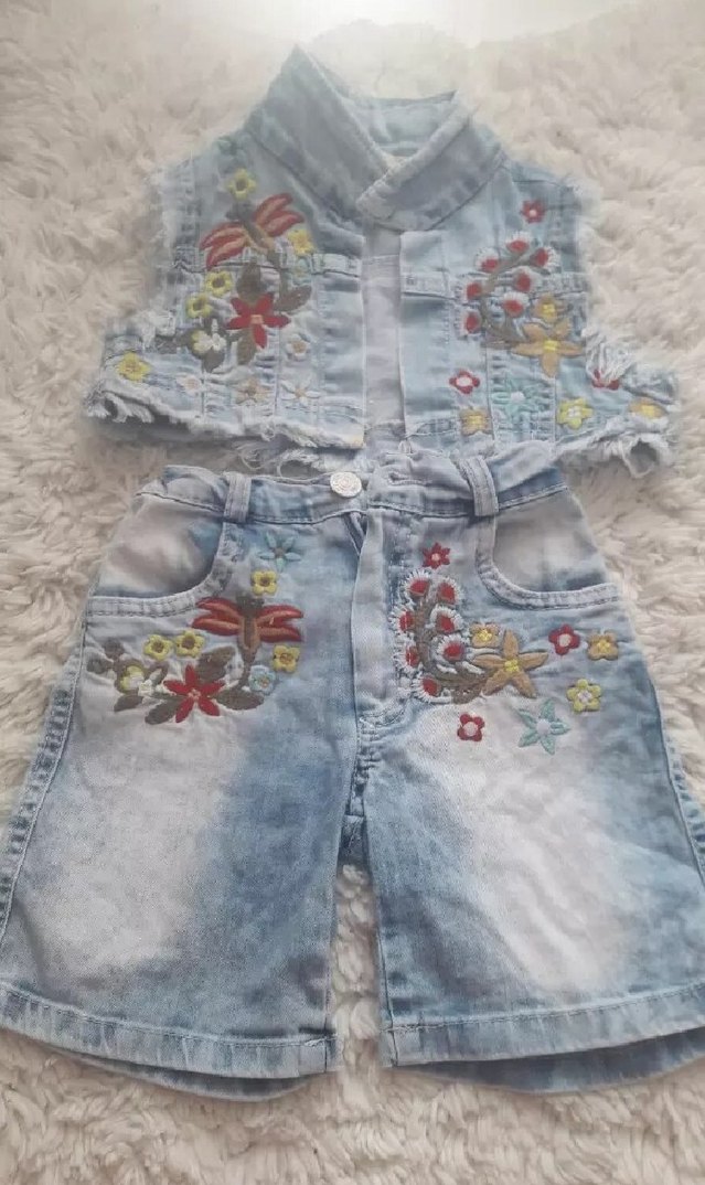 Renkli nakışlı çiçek desenleriyle süslenmiş, düğmeli ve kolsuz bohem tarzda ve normal kesimde. beli ayarlanır kemerdır kot kumaş