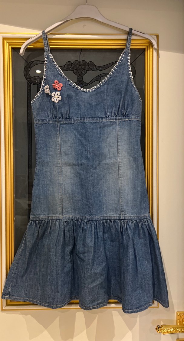 Nakışlı Renkli Kot elbise