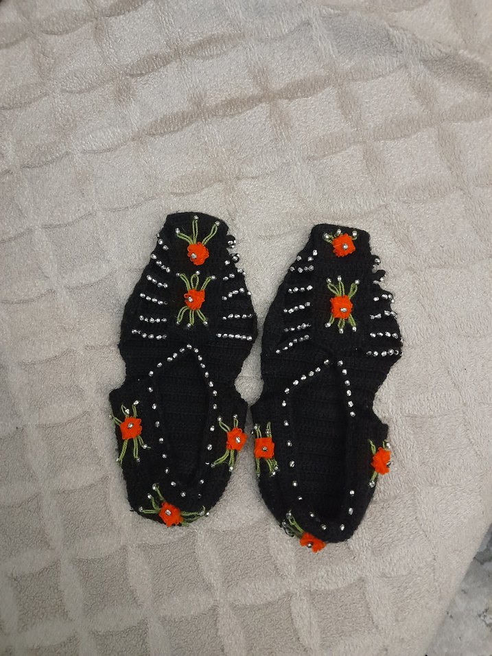 Renkli nakışlı çiçek desenleri ve ince topuklu, örgü kadın patik Bohem ve retro tarzları günlük rahatlıkla buluşturur.