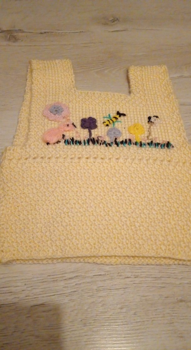 Pastel sarı renkte, çiçek ve hayvan nakışlı, yumuşak dokulu bebek yeleği. çocuk süveteri. çiçek temalı desenler ve çizgili dokuyla konforlu ve şık. 1-1.5 yaş aralığı 2 veya 3 yas bebek süveteri. yumusak ip yumuşak doku, tunus örgüsü, kare yaka bebek yeleği, adet fiyatıdır #yelek #bebekyelegi #kizbebekyelegi #yeşilbebekyelegi #bebekgiysisi #ebruliipyelek #1yasbebekyelegi #2yasbebekyelegi #erkekbebekyelegi #merserizeyelek #merserizeip #tunusisiyelek #suveter #