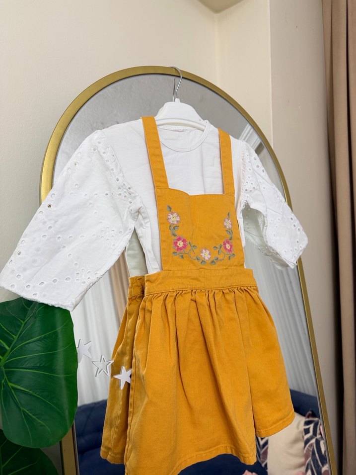 Nakışlı Sarı Kız Çocuk Salopet Elbise LCW 3-4 yaş