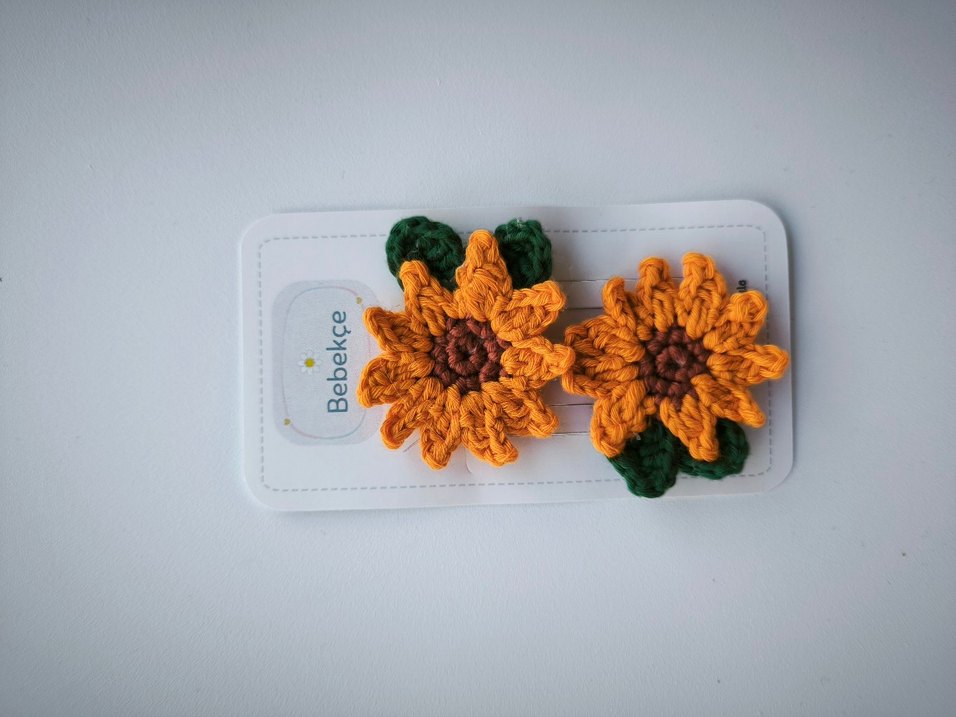 Nakışlı Sarı Örgü Ayçiçeği Saçsız Bebek Tokası