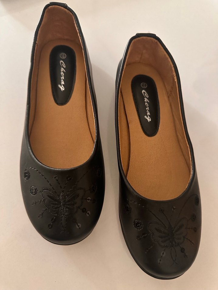 Siyah renkte, nakışlı kelebek desenli babettir. Günlük kullanım için uygundur. Hiç kullanılmadı.