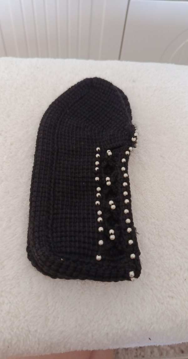 Nakışlı detaylar ve küçük boncuk süslemeleri bulunan siyah patik
