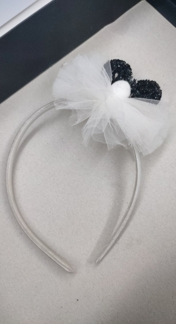Çocuklar için beyaz tül koç siyah nakışlı desenli saç bandı, gotik ve şık tarzı bir arada sunar. Trendsetterler için ideal.