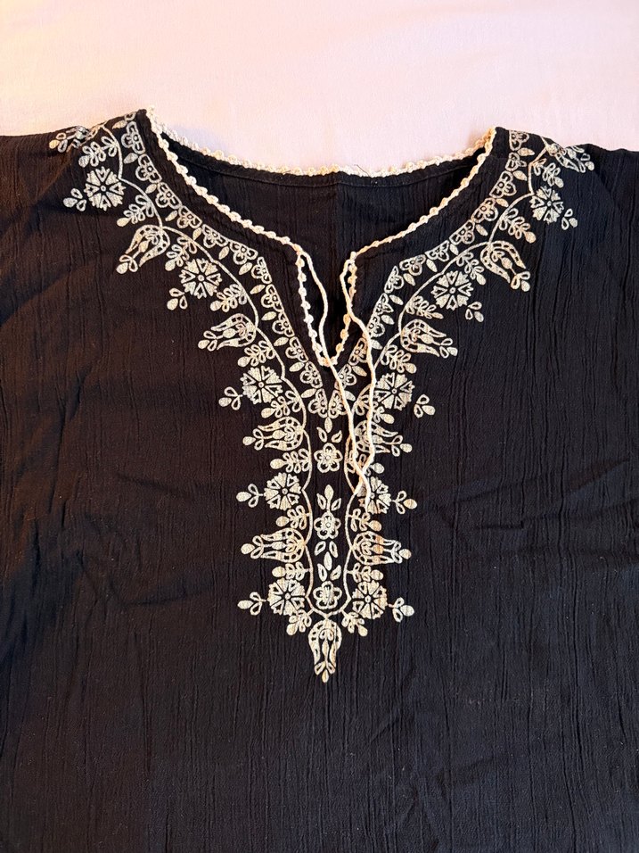 Nakışlı Siyah Bohem Şile Bezi Bluz