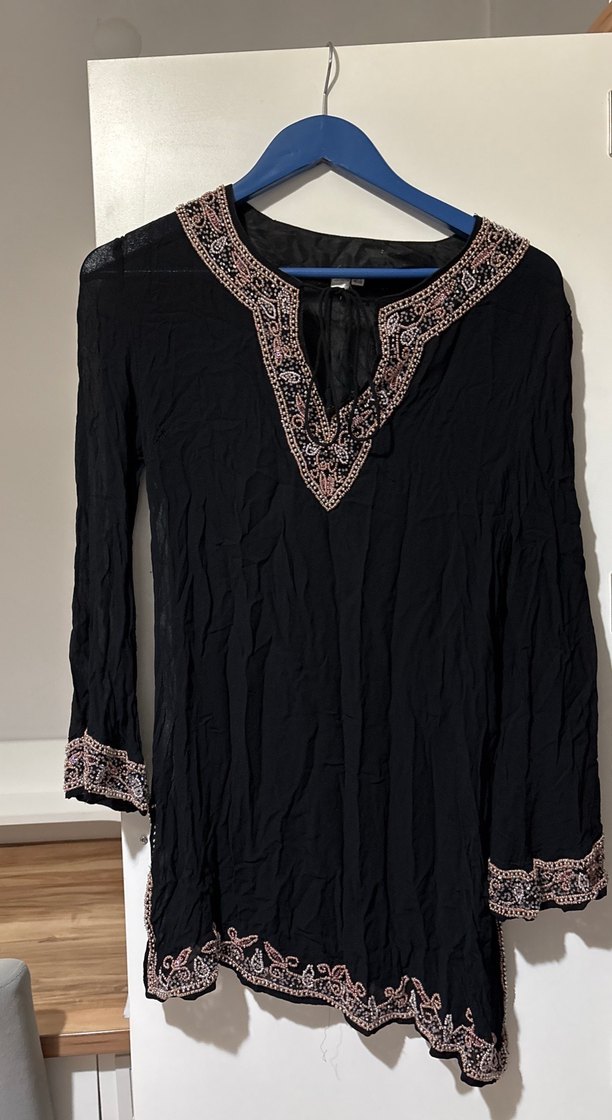 Nakışlı Siyah Bohem Uzun Kollu Bluz transparan
