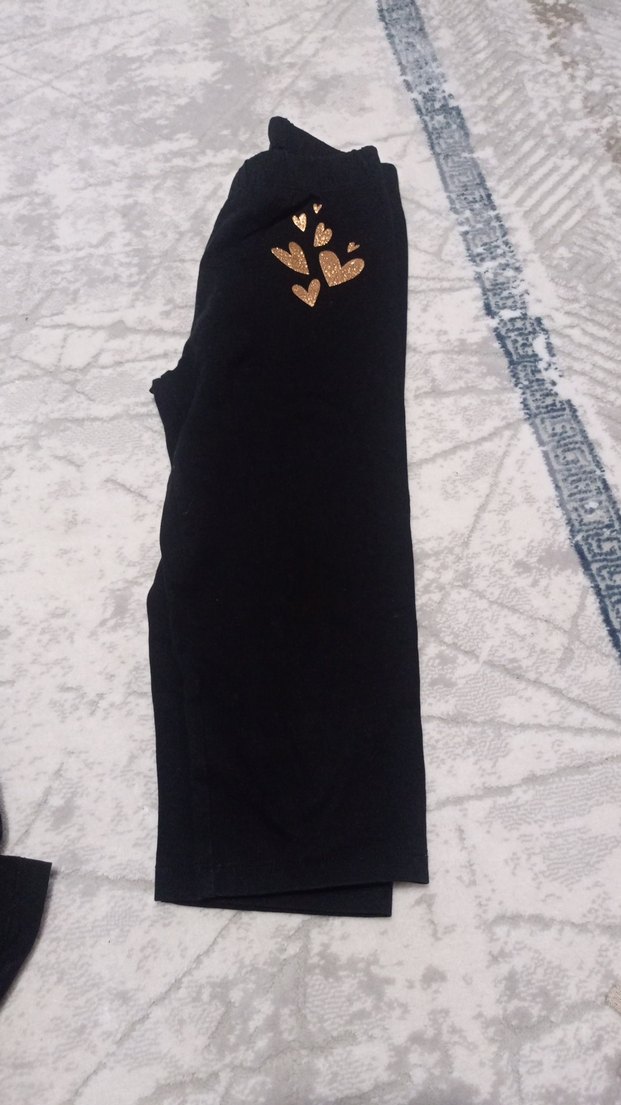 Yumuşak ve sıcak kumaştan, düğmeli detaylı ve nakışlı kalp desenli siyah bol kesim kız taytı.