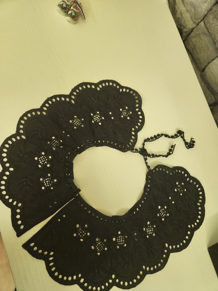 Siyah nakışlı ve dantel detaylara sahip, vintage gotik tarzda, kıyafet tamamlayıcı yakalık