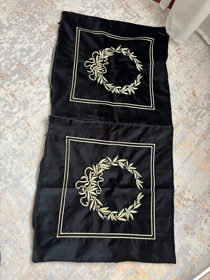 Nakışlı çiçekli çelenk desenli, siyah dekoratif yastık kılıfı kadıfedır