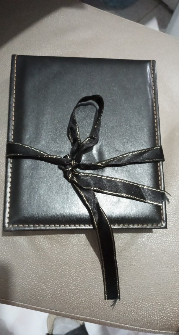 Nakışlı Siyah deri kaplama kutu takı kutusu